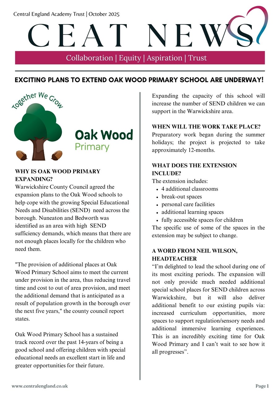 Exciting Plans to Extend Oak Wood Primary are Underway! Read more about the planned developments below: